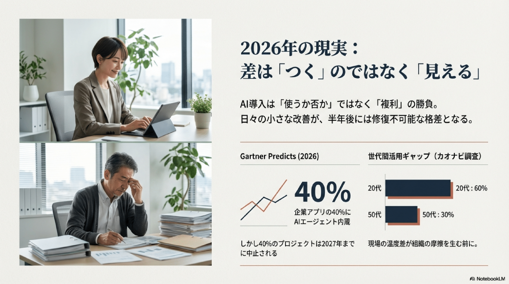 2026年の怖さは「AIがすごい」ではなく、『複利』です。