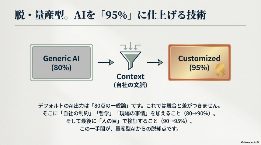 - AIの8割を95%に上げる(「確かめる仕組み」を持つ)