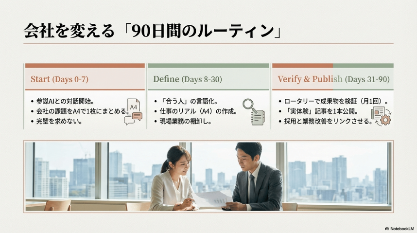 第16章:90日でやること――参謀AI+95%化+AIに届く情報発信