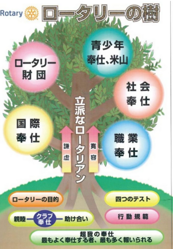 アイコンに使っている画像は、「ロータリの樹」です。この樹の根っこのところにあるのが、「クラブ奉仕」です。今回はロータリーの五大奉仕部門の1番に据えられている、クラブ奉仕について考えてみたいと思います。そもそもこのクラブ奉仕というのは、いったい何を指すのでしょうか。こう問いかけると、私自身も、はっきりと答えられる自信がないので調べてみました。