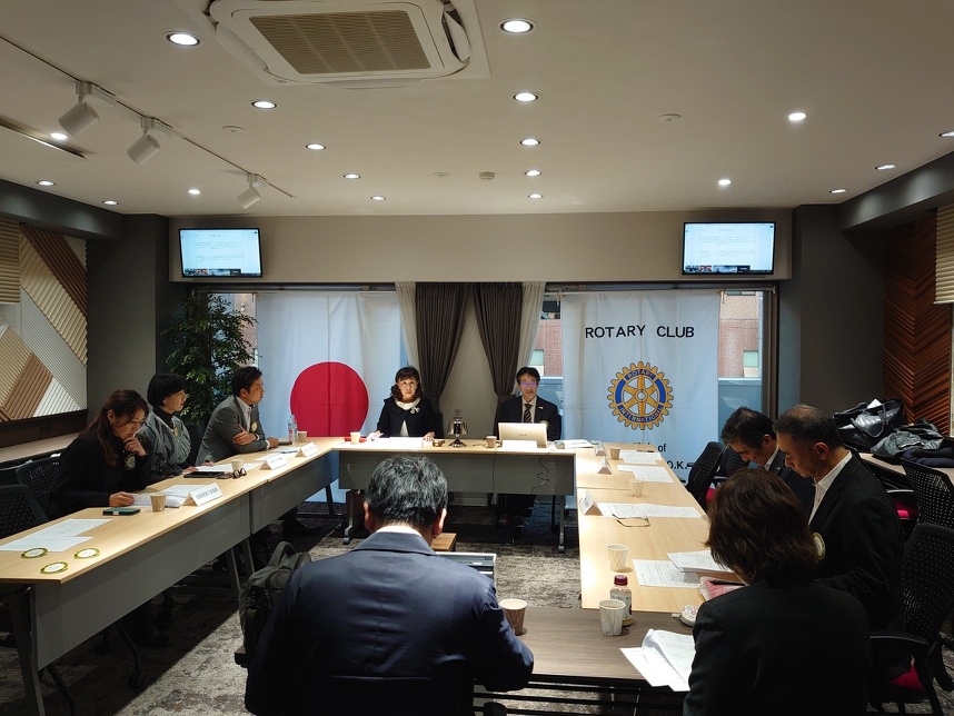 ①地区研修協議会の直後(7月1日よりも前) 会長エレクトが議長をつとめ、地区研修協議会で話し合った活動計画をクラブに提示する