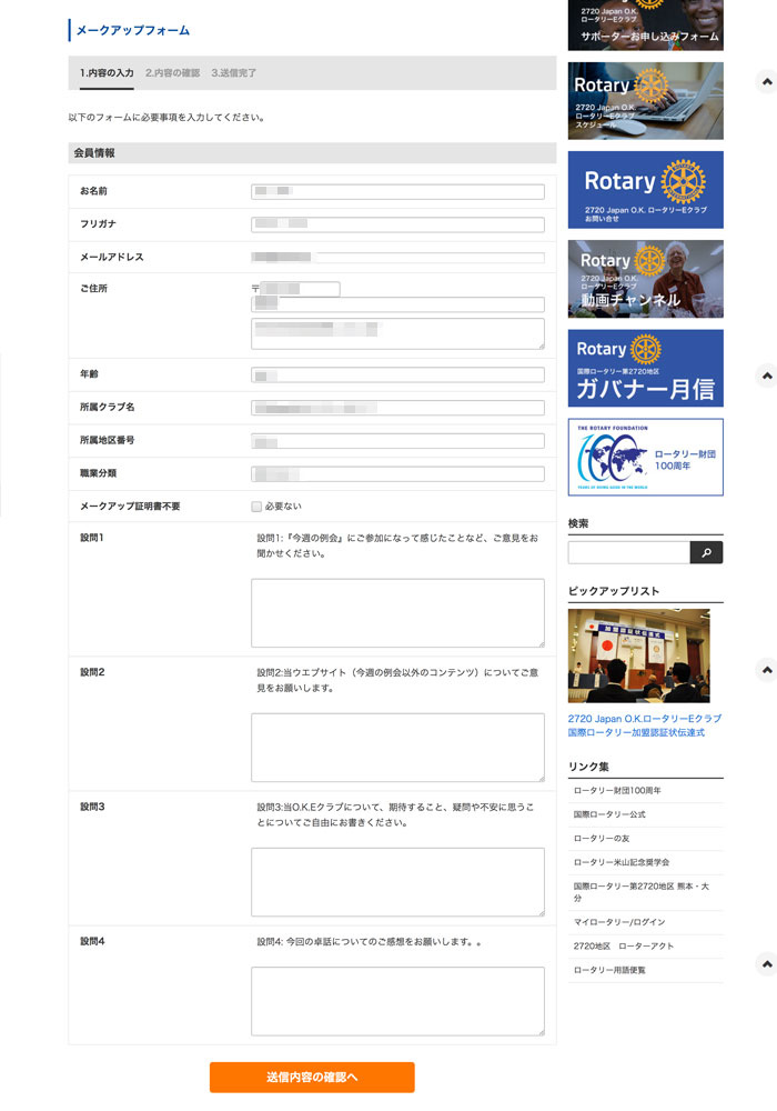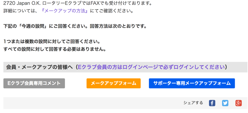 例会の感想や質問事項を入力していただき、例会への出席とさせていただきます。事務局で出席を確認いたしますので、例会の期間中に入力をお願いいたします。