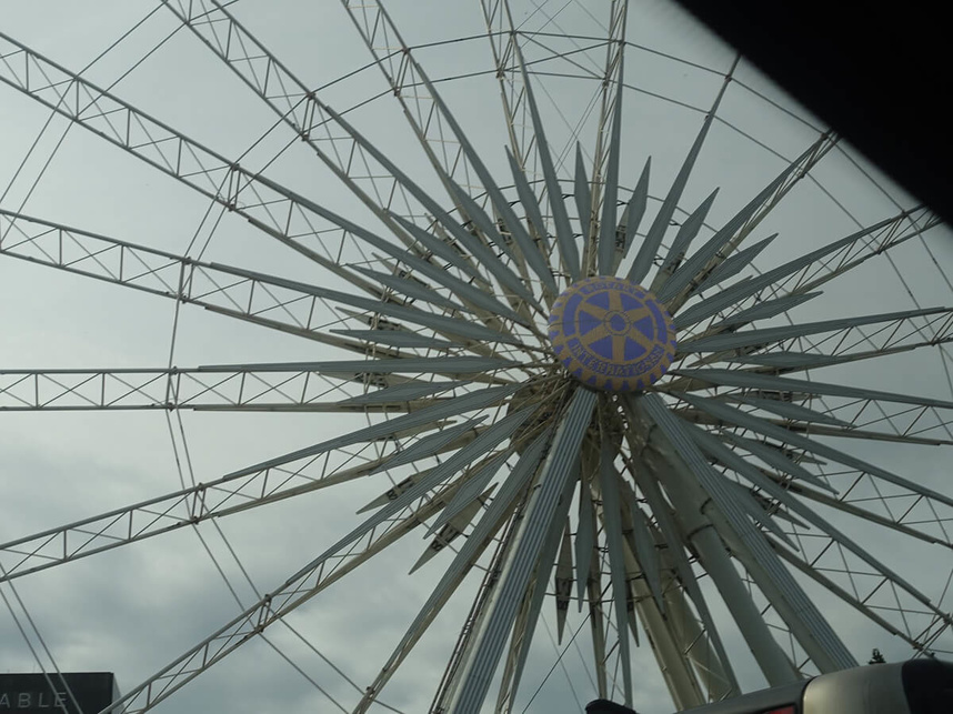 学会など他の国際会議で海外に行くこともありますが、規模がまるで違います!入国が厳しいアメリカでも‟Rotary Convention”と言うと、そのほかにはあまり聞かれずOKしてもらえます。会場への移動のバスで、観覧車の真ん中がロータリーマークになっていたのを、前田ガバナーが発見され、教えてもらいました。感激しながら、写真を何枚もパシャパシャととり、さらにテンションが上がりました。