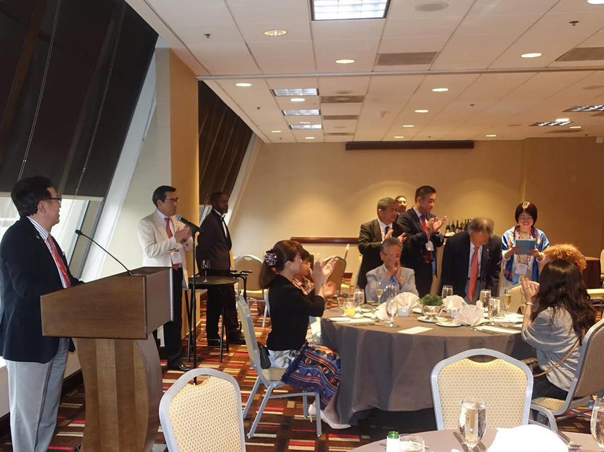 赤山:今回は、仕事が立て込んだ時期で、行こうかどうしようかと最後まで迷っていました。ですので、1年前に登録していた父の登録料は$265(29,150円)、ギリギリに登録した私の登録料$490(53,900円)とかなり高くなってしまいました。そして、アメリカ時間で国際大会に出席し、日本時間でホテルからオンラインで仕事するなどで乗り切るという、かなりタイトスケジュールになりました。それでも、開会式に参加した瞬間、本当に来てよかったと思いました。国際大会は、写真や動画だけでは伝わらず、体験でしか得られない感動があります。まさに、「百聞は一見に如かず」だと思います。このレポートを読んで頂いた方が、今後、いつか参加してみたいと思われ、一緒に参加できることを楽しみにしております。