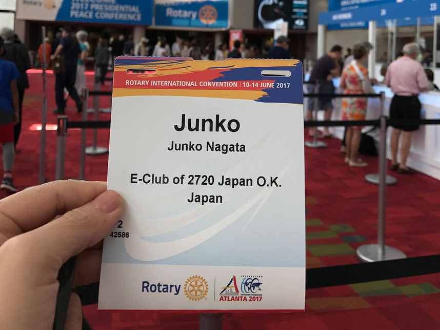 有限会社エムエス企画の永田淳子と申します。主人である熊本城東RC所属の永田壮一が7月より2720地区ガバナーの任務を仰せつかりましたが、私自身のロータリー歴は家族会員としての家族例会への参加か、初めて同伴したシドニーの国際大会、ガバナーエレクト(『次期ガバナー』はこう呼ばれます)配偶者としての国際協議会への参加のみであります。しかし、シドニー国際大会でロータリークラブの世界的規模を肌身でゾクゾク感じたことと、それまで交流したことのなかったありとあらゆる国の方々とのエキサイティングな出会いによりこのゾクゾクを再度体感したい!とアトランタ大会への参加を決定づけました。6年生の子供を5日間も欠席させるのには悩みましたが、担任の先生の「是非に!」という言葉に甘え同伴させて頂きました。以下、今回参加したアトランタ国際大会についてご報告させて頂きます。