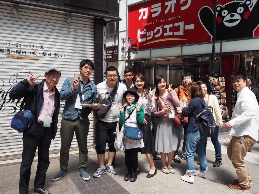 当日は天候にも恵まれ、メインプログラムの「街歩き」の中で出されたミッションをグループ毎に力を合わせてクリアしていく中で、国際交流の輪が広がったと思います。今回は偶然にも熊本地震復興支援飛行にきていた、航空自衛隊のブルーインパルスの演技飛行を間近で見ることができました。