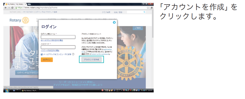アカウント取得には「正確な姓名の英字表記」と「ロータリーのデータベースに登録された、携帯アドレス以外のメールアカウント」が必須となります。