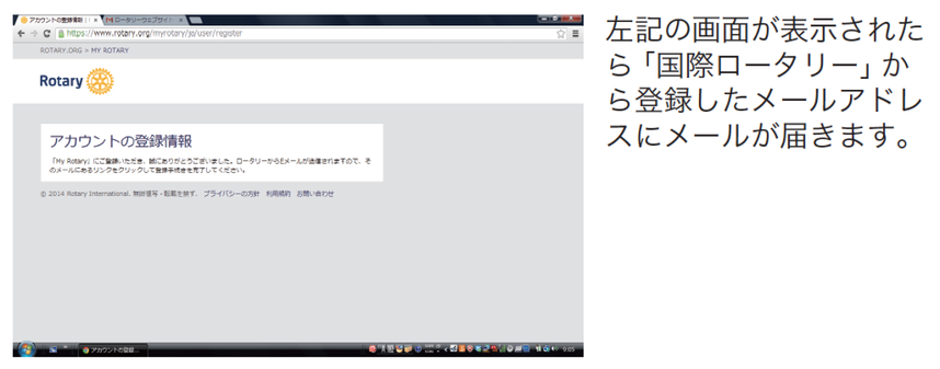 アカウント取得には「正確な姓名の英字表記」と「ロータリーのデータベースに登録された、携帯アドレス以外のメールアカウント」が必須となります。