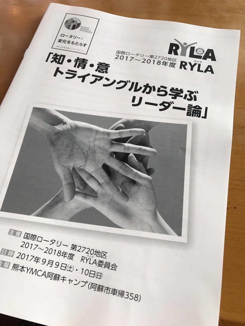 昨年の2720地区のRYLA、今年5月の2700地区に次いで3回目のRYLAです。