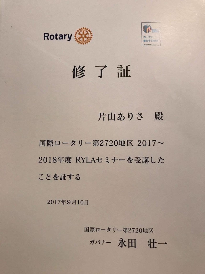 来年度もRYLAセミナーにヤングカウンセラーとして参加させていただく予定です。これからも「リーダー」について学び、理想のリーダーに近づけるよう、ロータリーさんのご指導の下、精進してまいります。