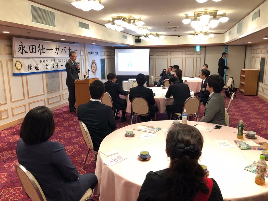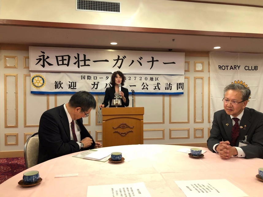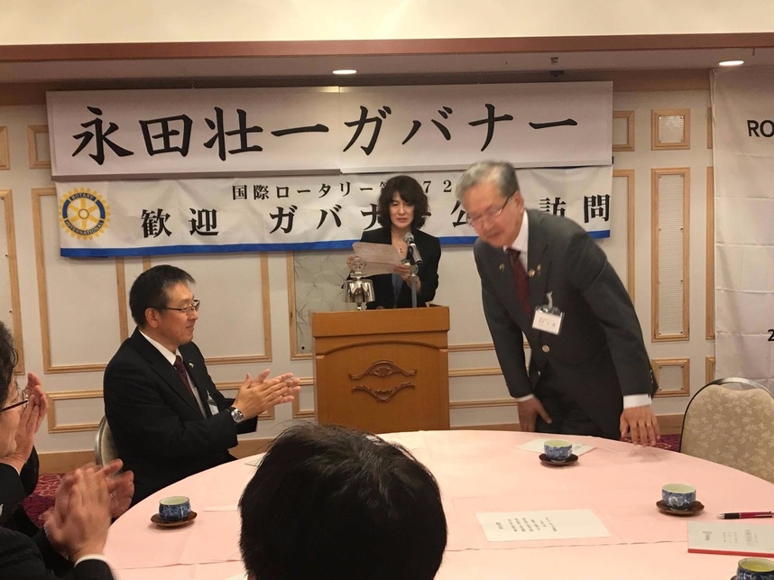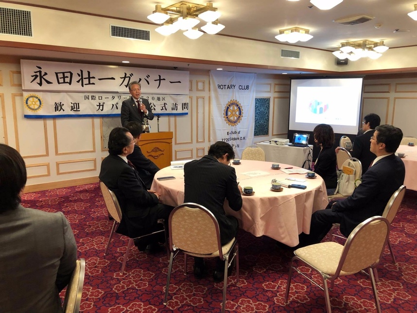 2.(完了報告)上記1.でご案内した記念事業実施日の夕刻、永田壮一ガバナーをお迎えする公式訪問例会(リアルミーティング)が開催されました。