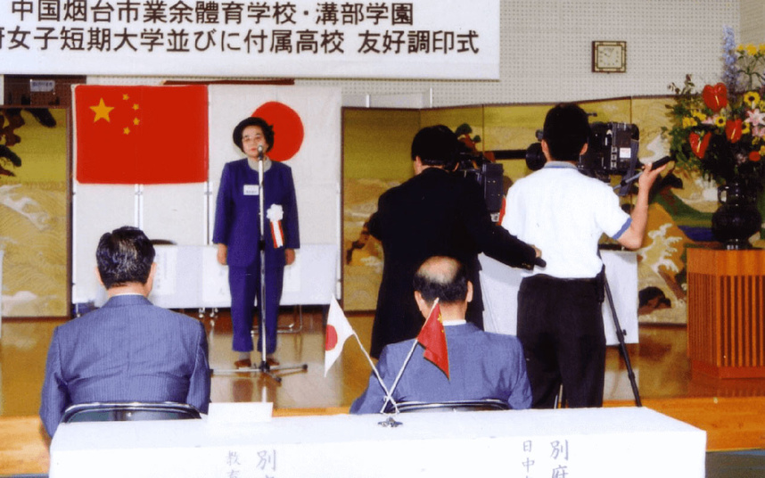 日中国交正常化をする2年前の1970年。2代目理事長である祖母は中国視察を開始、日中国交正常化をした1年目に、3代目理事長溝部仁は、学園の総務部長として、中国を訪れた。