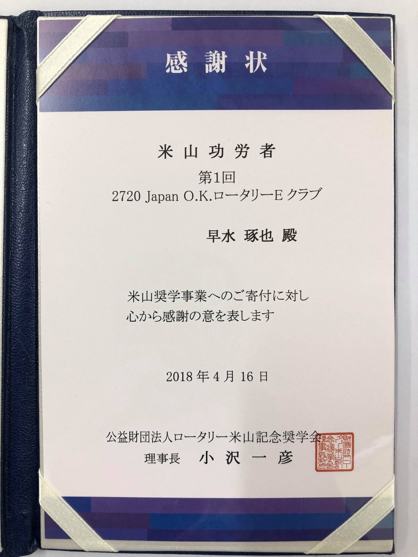 2720JapanO.K.ロータリーEクラブ会員の松田周作と申します。
