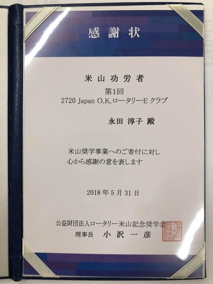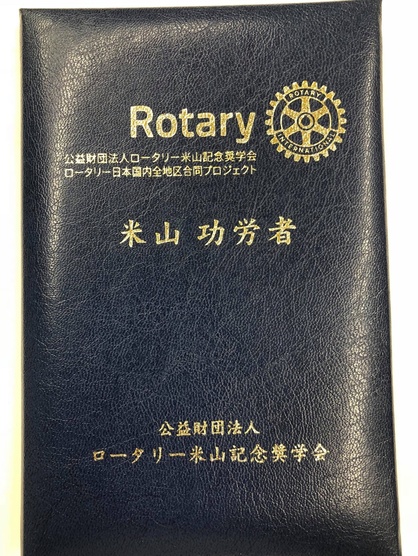 米山記念奨学会より 米山功労者の感謝状が届きましたので、ご報告いたします。