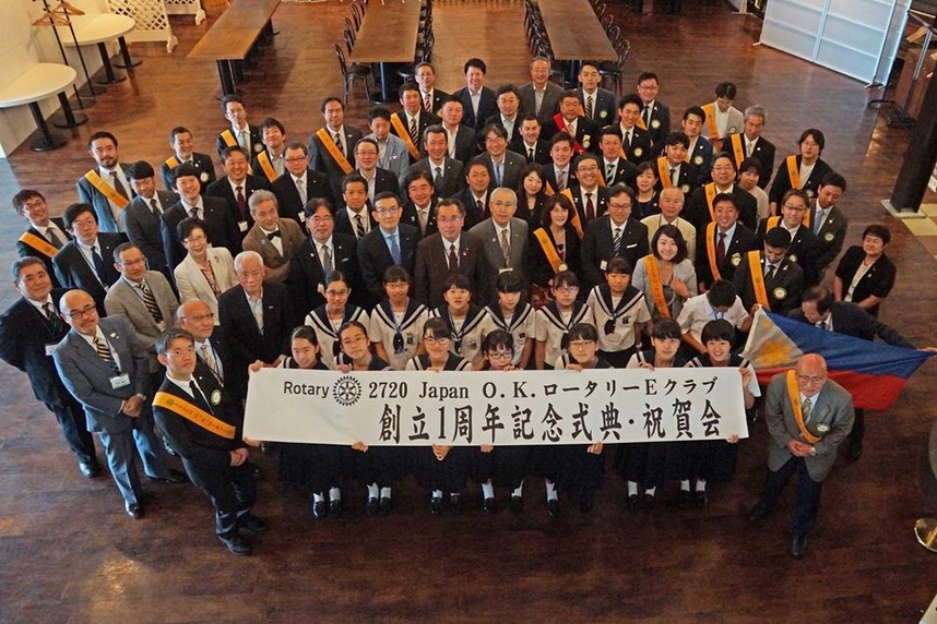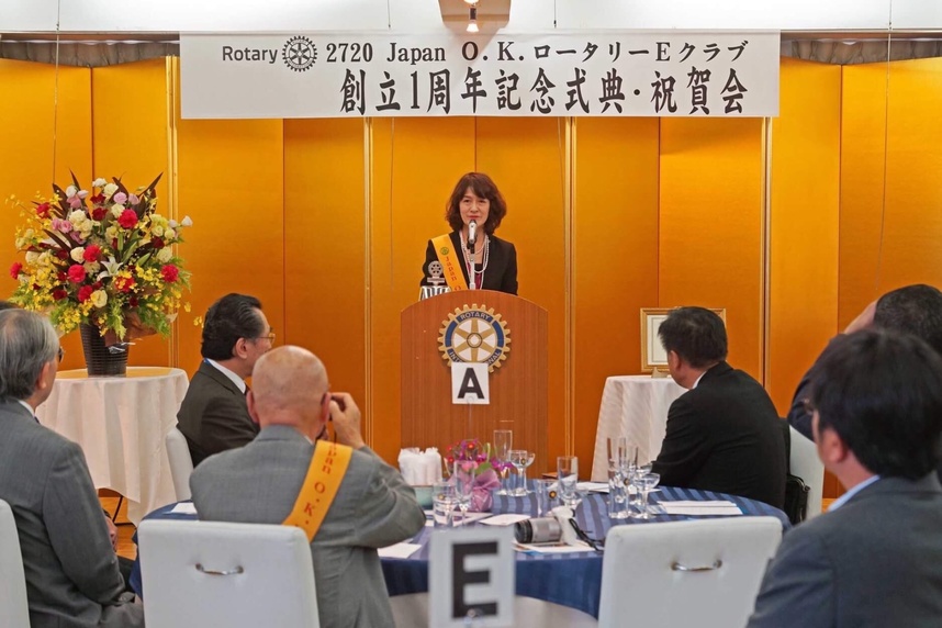 本日は2720JapanO.K.ロータリーEクラブの1周年記念式典に、たくさんのみな様にご参列頂き、ほんとうにありがとうございます。みな様に支えられて無事にこの日を迎えることができましたこと、そしてみな様にご祝福頂けますことを、心から嬉しく思います。