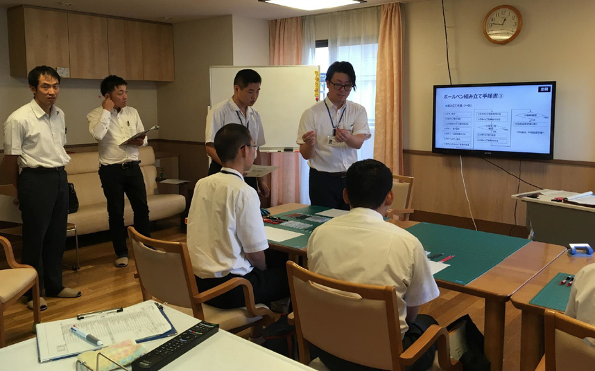 今回の取り組みは、そのような若者の将来を真剣に考える取り組みで私も真剣にアドバイスを考えました。4名の高校生がボールペンを分解しそれを短時間で組み立て直すという内容で、試行錯誤しながらまたチーム戦になれば互いの意見を出し合いながら苦手なコミュニケーションを一生懸命していました。