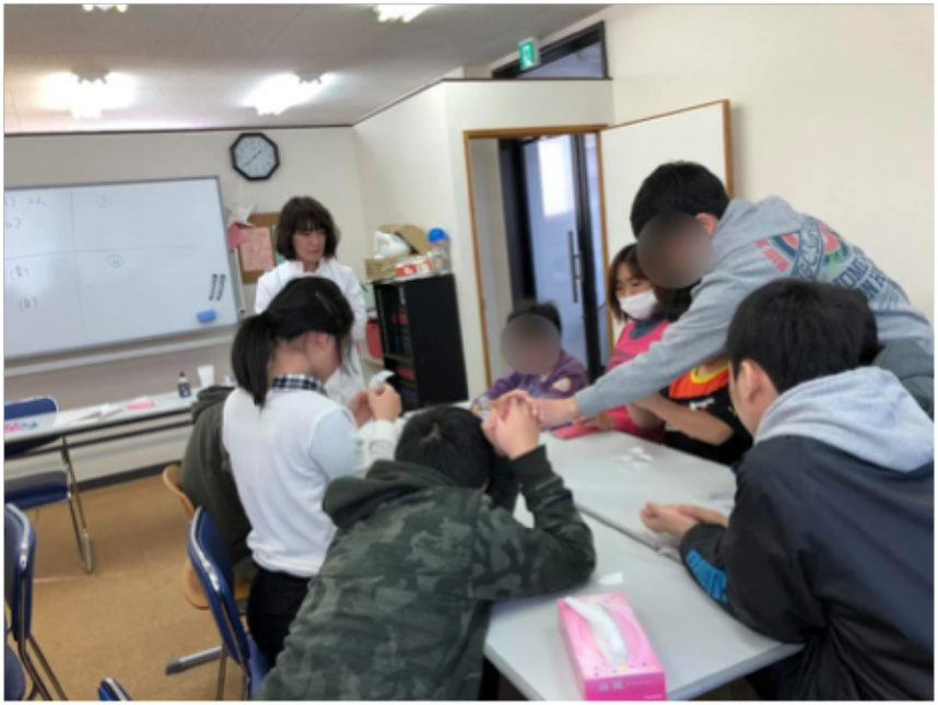 フリースクールを訪れた当初、子どもたちには笑顔もなく、下向き加減で目線を合わすこともできません。マスクで顔を覆い、目しか見えない子どもいます。
