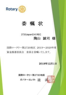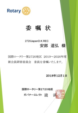 国際ロータリー第2720地区、2720 Japan O.k.ロータリーEクラブ 中川宝星です。