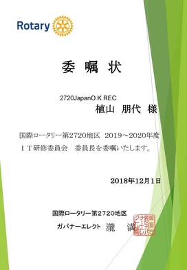 2720 Japan O.K. ロータリーEクラブ会員の方はこちらで出席へ