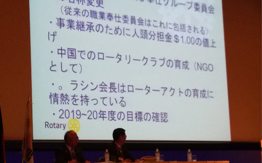 セッション前日の夜にRI会長ご夫妻・TRF管理委員ご夫妻歓迎晩餐会があることを聞いてなかった私に「絶対に行くべきだ!私が捩じ込んでやるからついてきなさい!」と仰っていただき、素晴らしい経験をさせていただきました。そして、名刺交換に付き添っていただき、永田壮一PDGにバトンタッチしていただき、同期のPDGの皆様を紹介していただき、本当に感謝の気持ちでいっぱいでした。