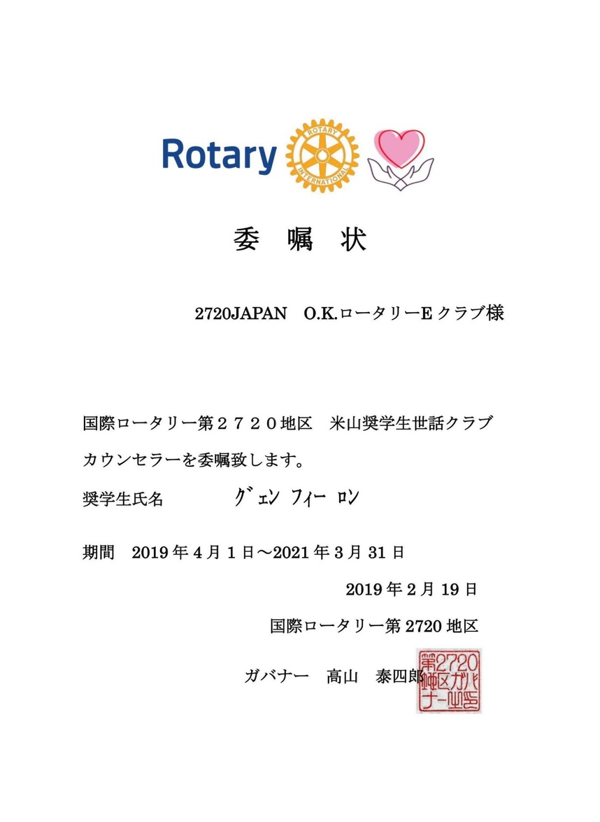 2720 Japan O.K. ロータリーEクラブ会員の方はこちらで出席へ