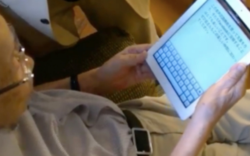 日野原先生はパソコンもワープロも使ったことない完全アナログ人間でしたが、自らFacebookで毎日ご自身のメッセージを会員に送りたいということで、当時平均年齢71歳で1万3千人の「新老人の会」にFacebookの導入が決まったのでした。100歳が始めたSNSということで90歳代、80歳代そして70,60歳代の会員がFacebookを通じて毎日日野原先生と接することができるようになったのですが、多くの方はパソコンの経験も無くネットにつながるツールとしてiPadを使って頂くためにFacebookとiPadの勉強会を立ち上げました。