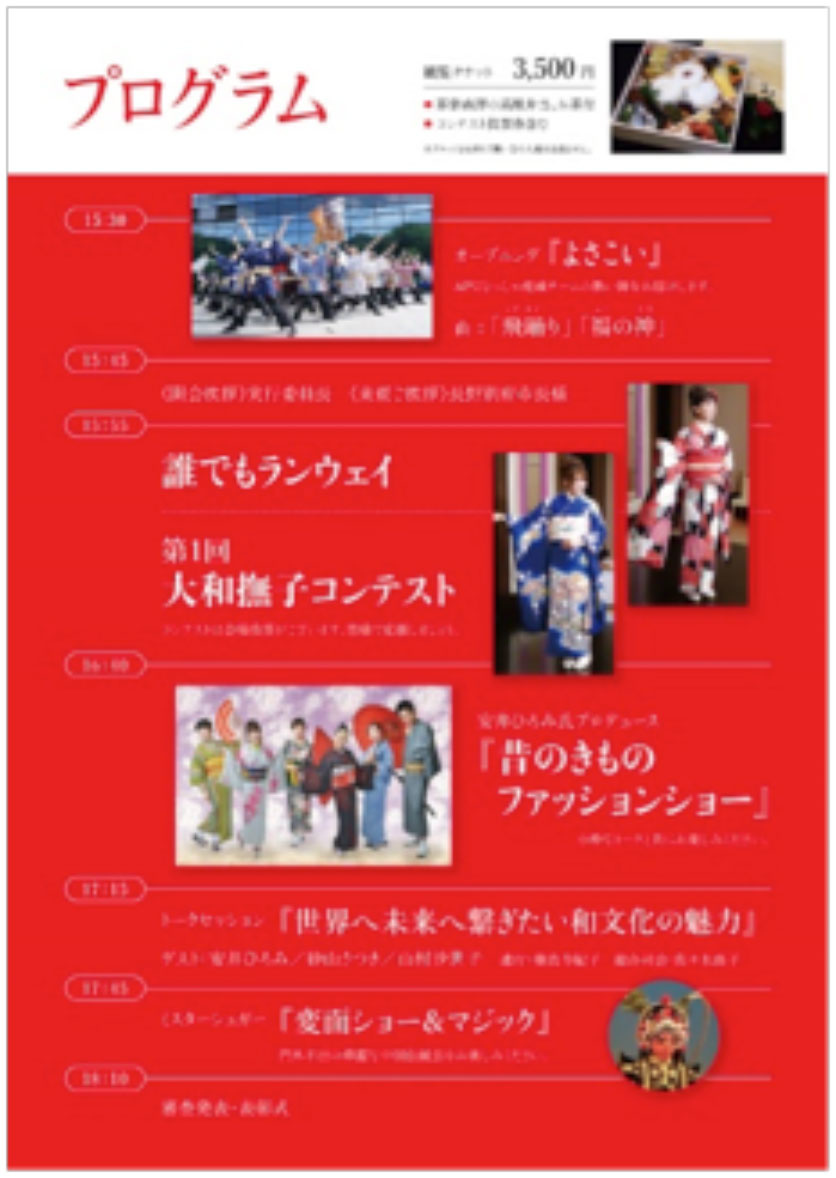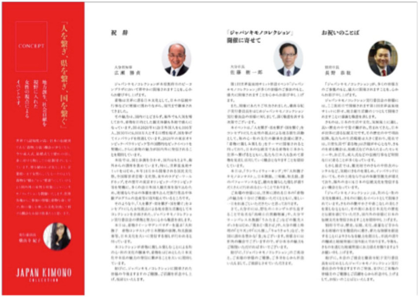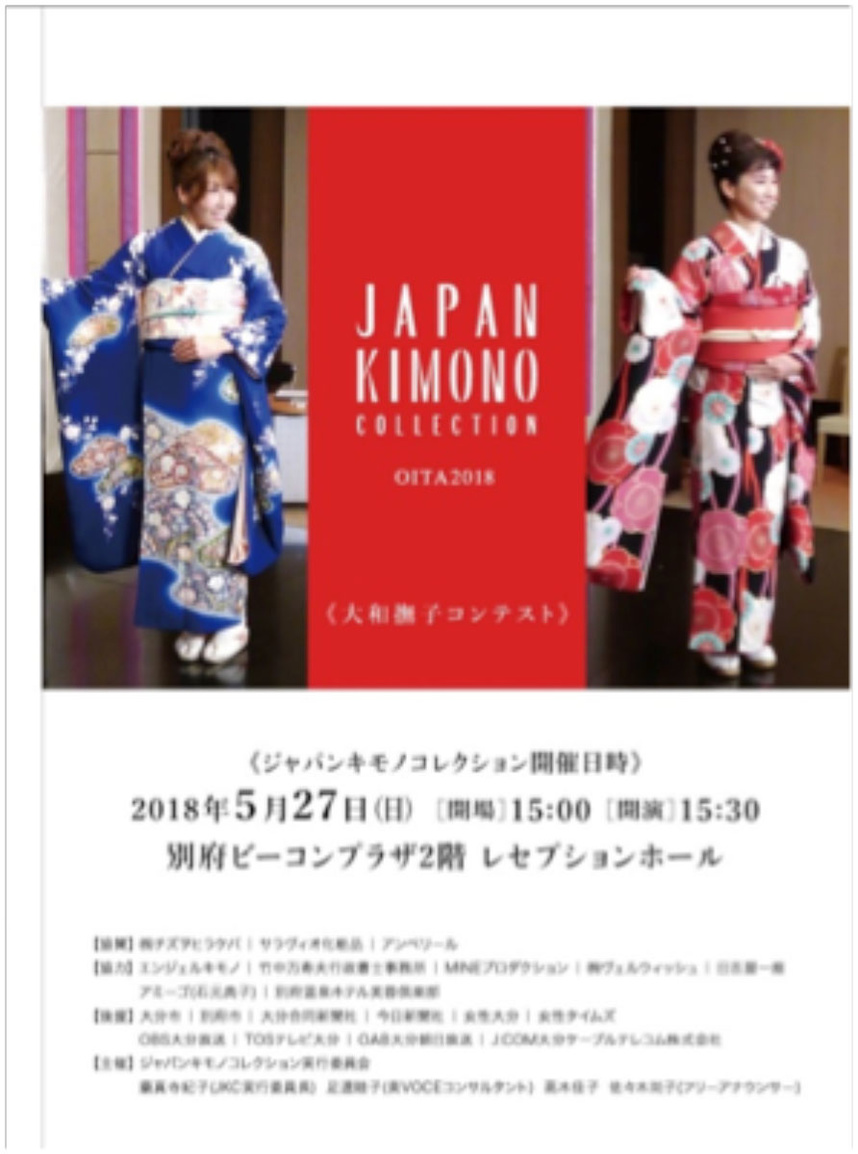 そんな中、第1回世界温泉地サミットが開催されるとの情報を頂き、着物とそれに付随する和の文化を取り入れた催し「ジャパンキモノコレクション」と、参加者をもてなし和の文化の普及活動を支援する撫子大使を選出する「大和撫子コンテスト」の同時開催のメリットを、広瀬大分県知事に直接お伝えする事が叶い、最終的に大分県・大分市・別府市のお力添えをのもと開催されました。