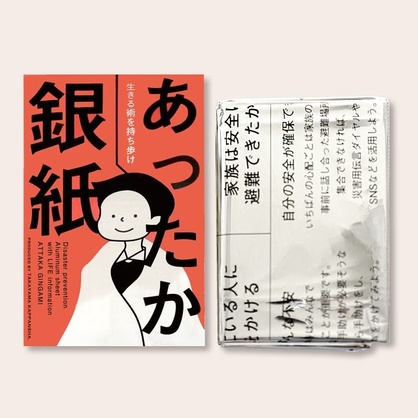 弊社オリジナル商品「あったか銀紙」を先日OBSテレビの防災特集で取り扱って頂きました。雨風と寒さから体を守れる防寒用あるシートに、被災時に役立つ情報を印刷した商品です。会員の皆さんも、普段からぜひ災害へのモノと心の準備をして頂きたいです。