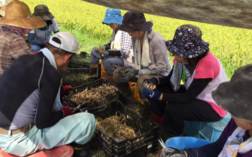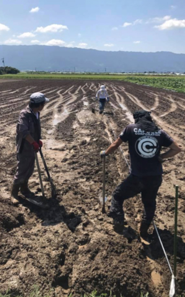 少しばかり時間を要しましたが、その時間は野津町の農家さんとの信頼関係を築く良い時間となりました。一緒に現地まで視察に行き、島らっきょうの苗を購入しました。初めての栽培ということもあり、畑や田んぼでの栽培のほか、ビニールハウス内で水分を極力与えない栽培なども試しました。実は、この何気ない試みが2017年7月5日に発生した九州北部豪雨の農業復興に繋がることになるのですが、当時の私や農家さんは知る由もありません。