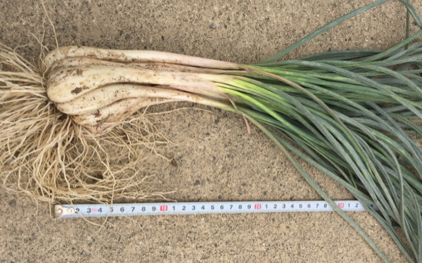 その後、野津町の農家さんは様々な方法で島らっきょう栽培を試していました。元々、ほんまもん野菜を栽培しており、美味しい野菜作りができるとの評判があるくらいの方でした。島らっきょうは分蘖が進み、私が協力隊を卒業する2017年3月頃には大量の島らっきょうが収穫できるまでになりました。