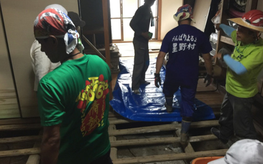 7月8日、農家さんから物資をいただき、朝倉に向かいました。そこは爆弾が投下されたような光景となった故郷がありました。言葉は出ず、体がブルブルと震え、動くことが出来ませんでした。その日以降、全ての事業や仕事をキャンセルさせていただき、ボランティア活動に入りました。しかし、被害の大きさに対して人間の力はあまりにも無力であり、絶望しかありませんでした。そのことを必死の思いでFacebookにアップすると、九州中の協力隊が助けに来てくれました。その後、協力隊つながりでボランティア組織と出会い、活動を共にするようになりました。ボランティア活動が人生で初めてだった私は、この時の他の地域の協力隊との連携や雨の日のボランティア活動や、そして農業ボランティアが日本でもとても珍しいものとは知りませんでした。