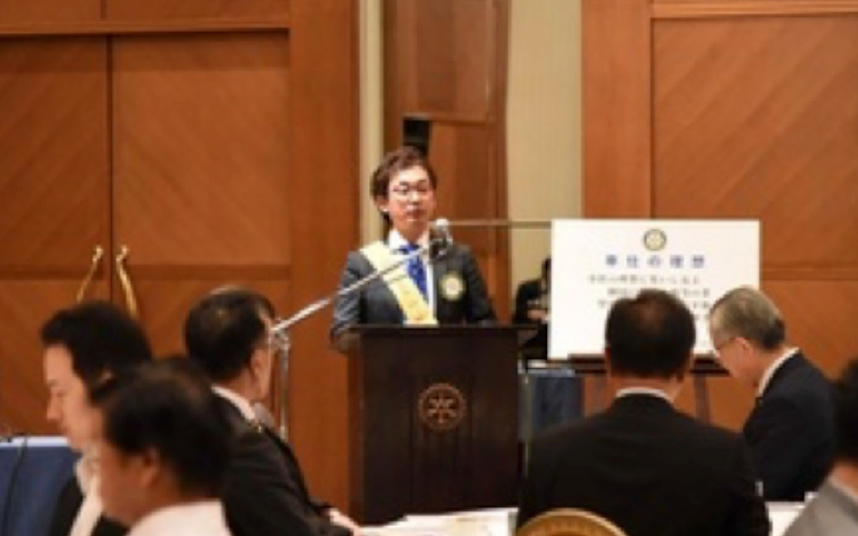これ等は「ロータリーの目的」(Object of Rotary)に通じるものです。中核的価値観への理解を深めることによって、ロータリーの使命や素晴らしさを感得し、一人ひとりが奉仕の実践へ行動して頂きますよう、訴えました。