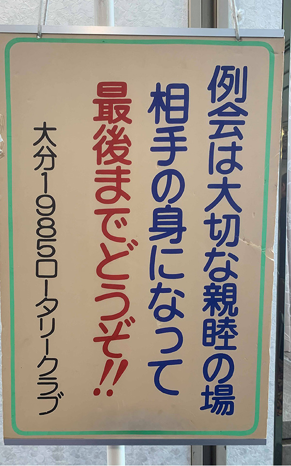 繰り返しになりますがロータリーの例会は私にとって毎週毎週楽しみで、OKEクラブの例会はもちろん、移籍した現在でも基本大分臨海ロータリークラブの例会にも出席しています。