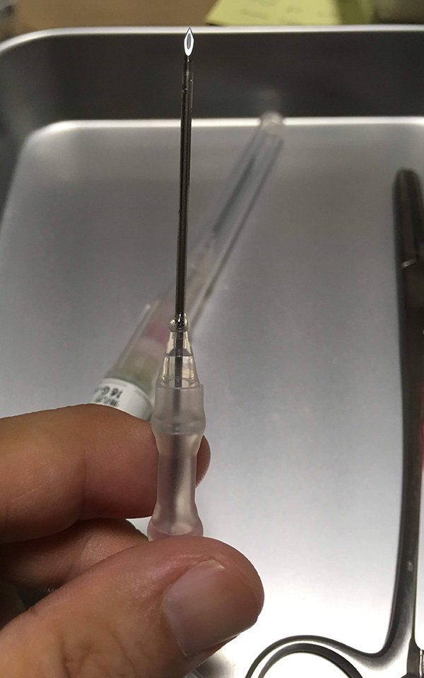 自己穿刺というのは、ボールペンの先っぽくらい太い針を自分で血管に2ヶ所刺すことです。勇気の問題なのですが、やってみると、正直、看護師さんや技士さんに刺してもらうより、痛くありません。