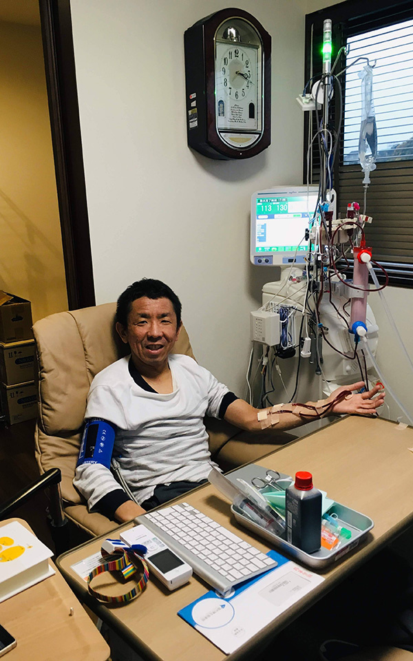 今では、週に5回、1回に3時間というペースでやっていますが、回数が多ければ多いほど、毒素が体に溜まりませんし、溜まってもすぐに抜けるというメリットもあり、食事制限や水分調節もほぼ必要がなくなりました。体が軽くなった感じで、体力は戻っていませんが、透析の時間を除けば、健常者と変わらない生活ができています。