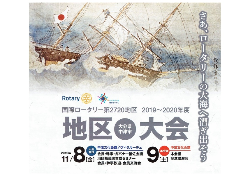 11月8日(金)9日(土)の二日間に渡り、2019−2020年度の地区大会が大分県中津市内にて開催され、我がEクラブからは23名の登録者と米山奨学生のロン君も参加し、地区大会を体感(勉強、親睦)して参りました。