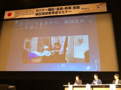 そのパネリストの中に、我がクラブの《中川宝星会員》が壇上にてローターアクトの事やその後の素晴らしい活動体験等を発表していただきました。