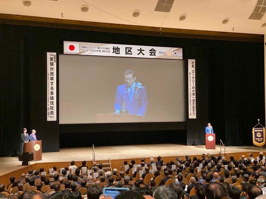 後半は各クラブの次年度地区大会ホストクラブ挨拶と続き、記念講演(立命館アジア太平洋大学学長 出口治明氏 テーマ…変態が改革する多様性社会)にて閉幕致しました。