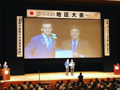 そして地区表彰におきましては、《2018−2019年度 ロータリー賞 会長特別賞:ゴールド》の表彰をいただくことが出来ました。この賞は前年度に続く2年連続の表彰だった事もあり、地区表彰委員会の木村初委員長より冒頭において受賞の名誉を讃えるご説明をいただきました。参加会員と共に大いに盛り上がることが出来嬉しかったです。
