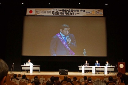 その後、RI会長マーク・ダニエル・マローニーのビデオメッセージや瀧ガバナーの想い、硯川ガバナーエレクトの挨拶、大森ガバナーノミニーの挨拶と続き、今後の当地区への想いや方向性を説明いただけました。