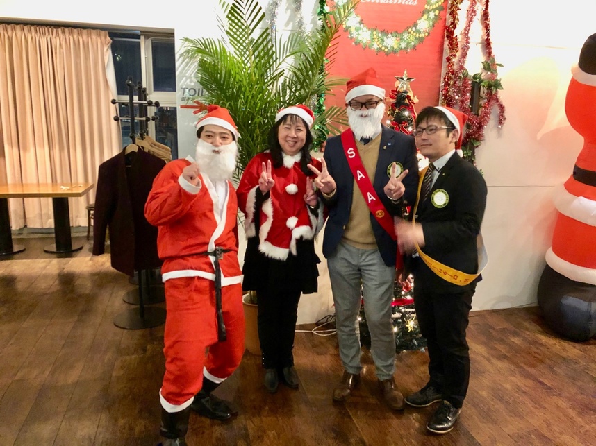 初開催のクリスマス例会(11月30日)、親睦委員長の今長会員のもと、司会の佐藤(弥)会員・佐々木会員…参加された皆さまのお陰で楽しい例会となりました。