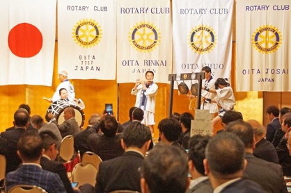 1月8日に開催された大分市内9RC新春合同例会におきまして、年男・年女の会員皆さまのご紹介があり、恒例により各1口ずつスマイルをいただきました。