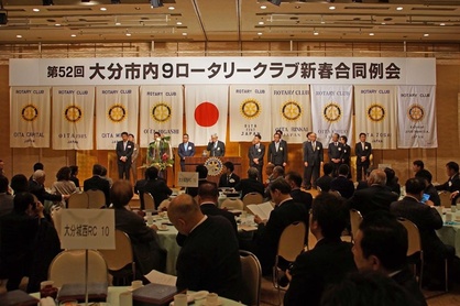 新春合同例会とは、第2720地区の大分第4グループの9クラブが、一堂に会して新春の合同例会を開催する年始の大きな行事です。私も今回が3回目の例会参加となり、大体の雰囲気に馴染めるようになりましたが、普段お会い出来ないロータリアンとも親睦を深めることが出来る絶好の機会となっています。