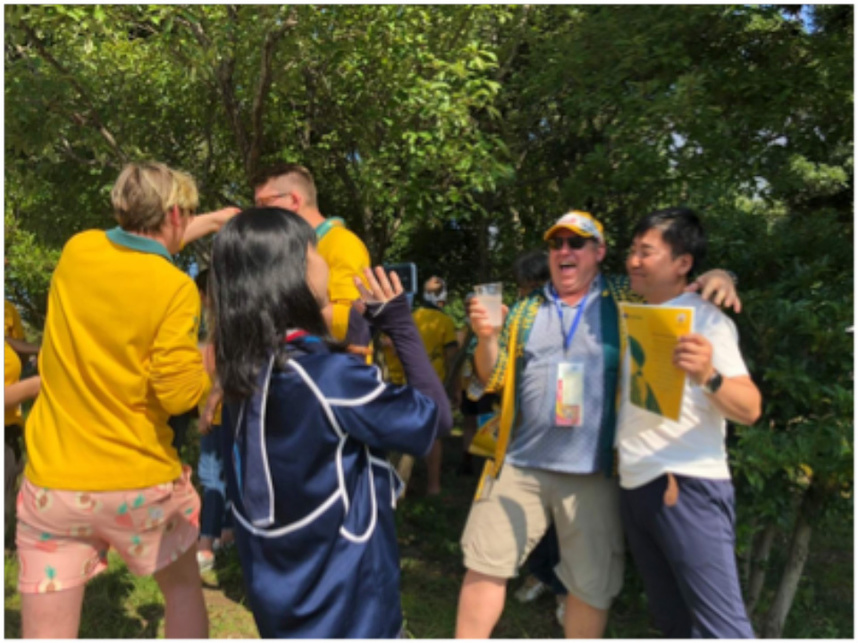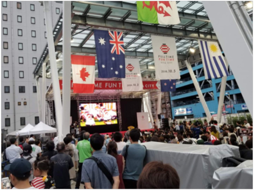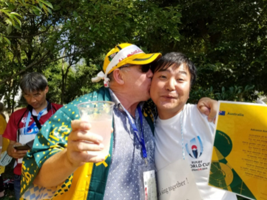 前回RWCで当クラブの植山理事にお手伝いいただきながら、会場でオ-ストラリアの人達とナショナルアンセム(国歌斉唱)を会場の外で歌ったり、両国の歌詞カ-ドを配布。知らない外国の方々ととても楽しく、大分では味わえない雰囲気を経験できました。