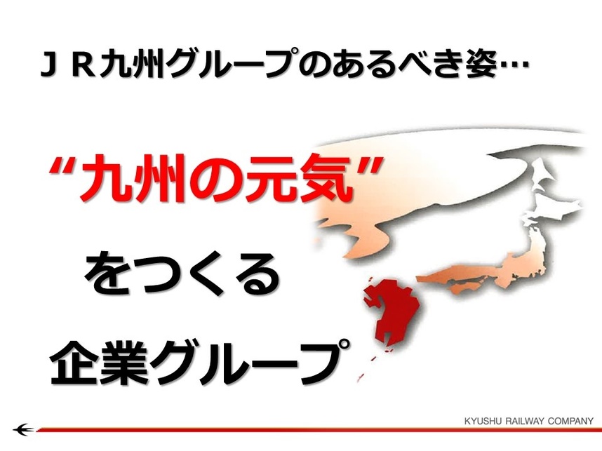 1ページにもありますように、JR九州グループのあるべき姿として「九州の元気をつくる企業グループ」を標榜しております。企業活動の中でも一番皆さんに馴染みがあるのが鉄道事業だと思います。