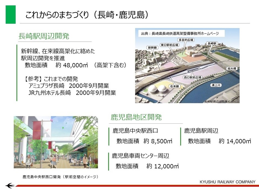 また、これ以外にも先ほどご紹介しましたように長崎においては駅周辺整備に合わせて増床を計画していますし、鹿児島中央も駅ビルの反対側にあるJR九州鹿児島支社の土地やひとつ隣の鹿児島駅の土地での開発も計画中です。