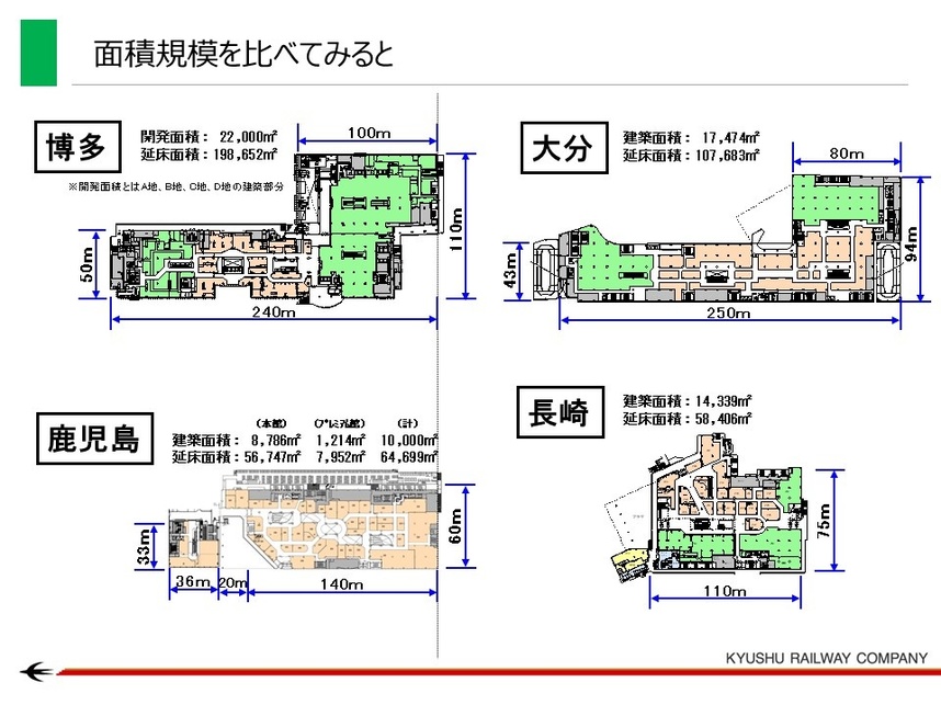 規模的には大分とよく似たものになると思います。また別の土地にはオフィスビルも計画しています。宮崎はJR九州の土地に隣接していた宮崎交通さんの土地と一体的に開発しています。面積は小さくなります。