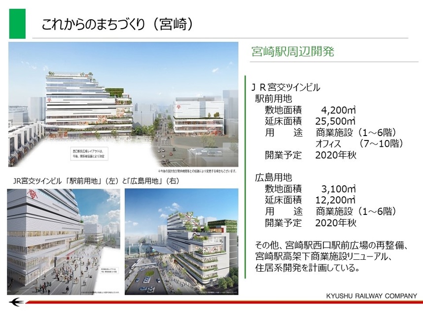 現在、大型の駅周辺開発として、熊本と宮崎の駅ビルを建設中です。