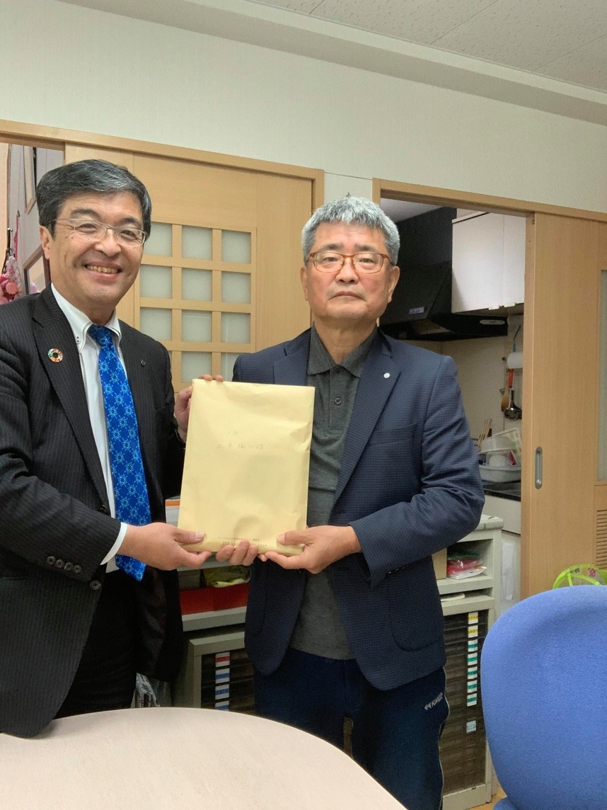 後日早水会長が直に奨学金を渡しに行っていただいています。
