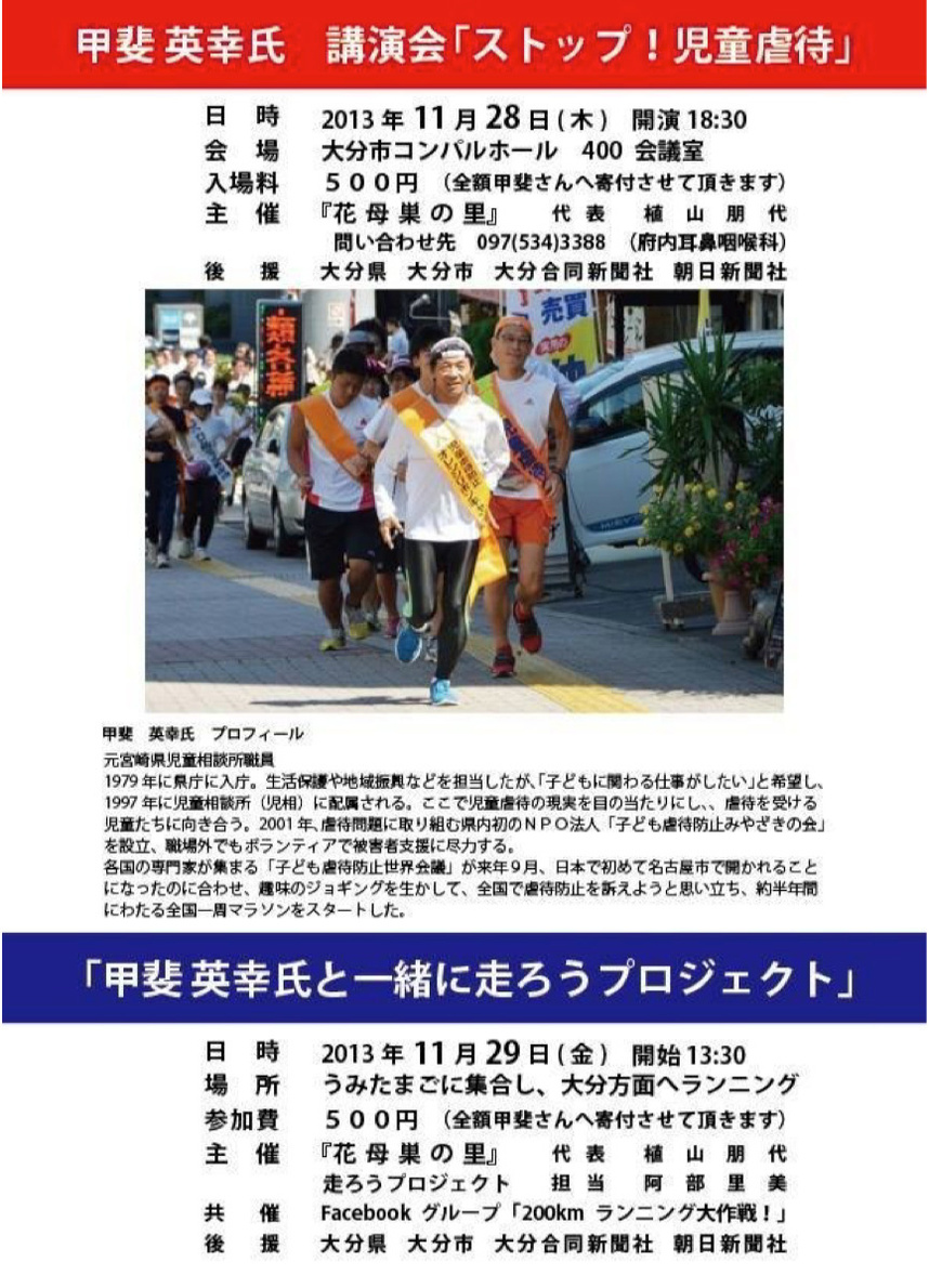 「虐待を受けた子どもの痛みと虐待をせざるを得なかった親の悲しみを背負って走ります」